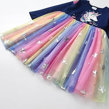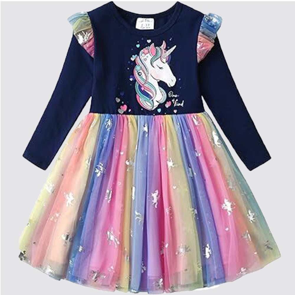 VKT Foil Rainbow Bottom Unicorn Navy Blue full Sleeves Frock 12990