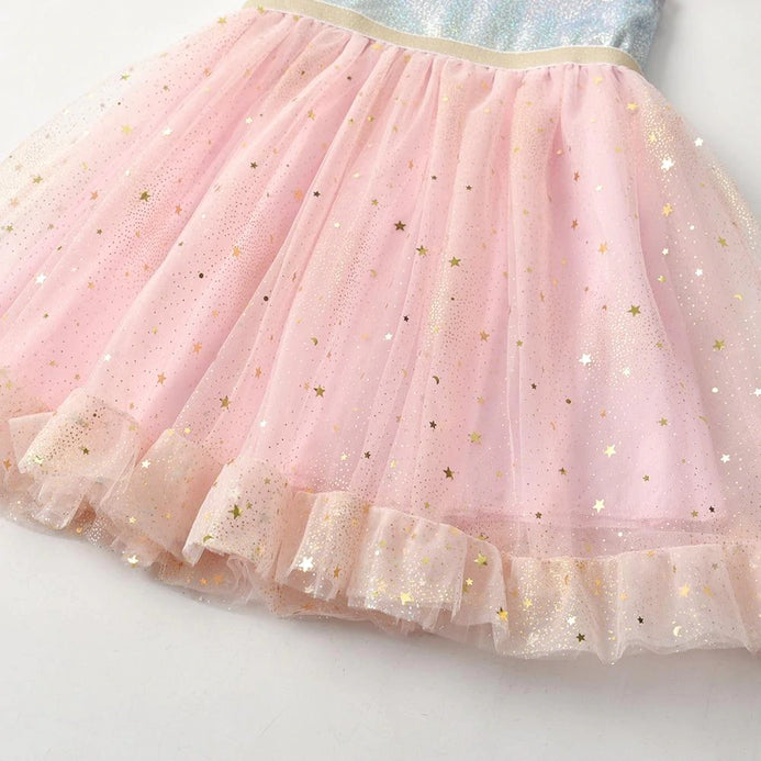 VKT Rainbow Chest Star Bottom Pink Frill Frock 8719