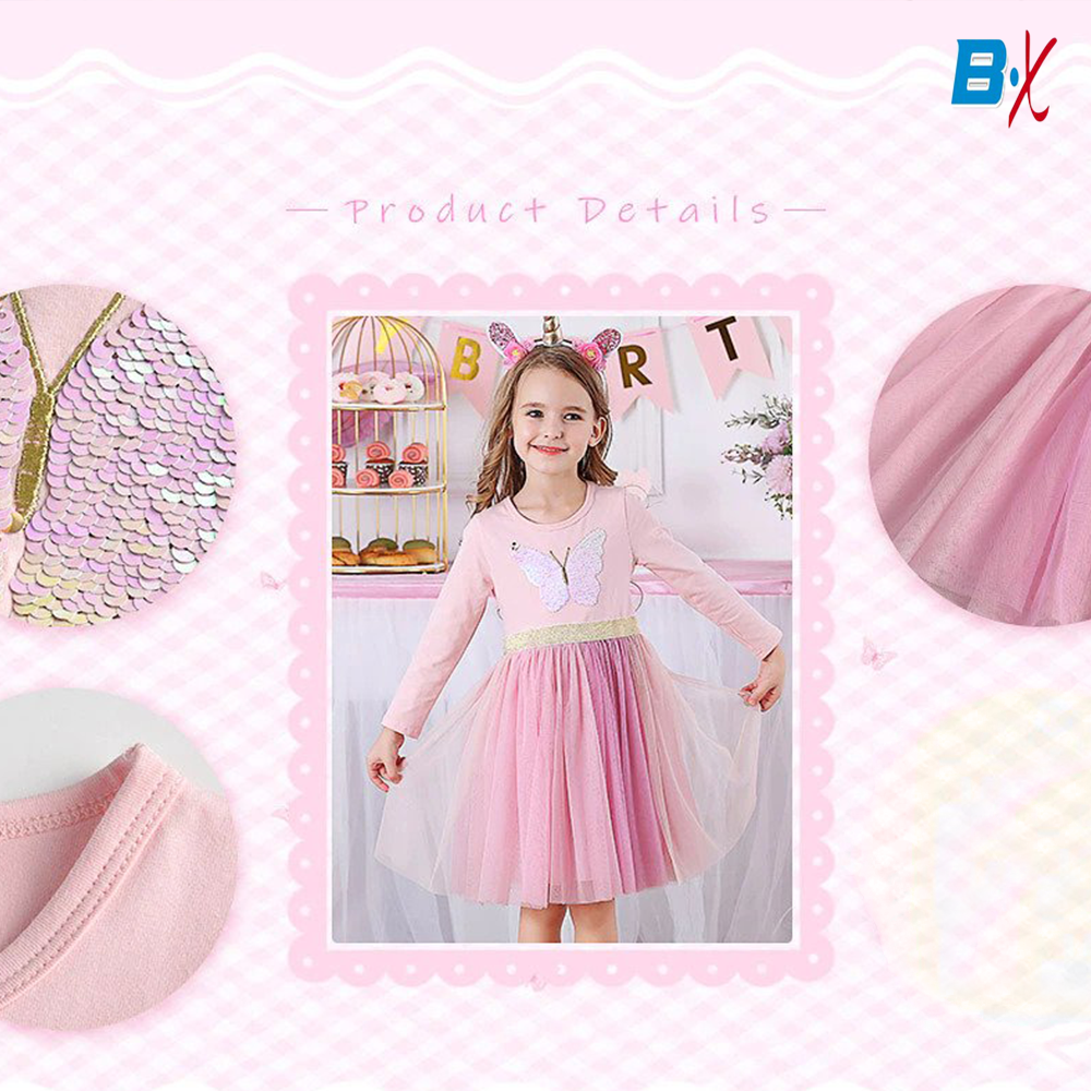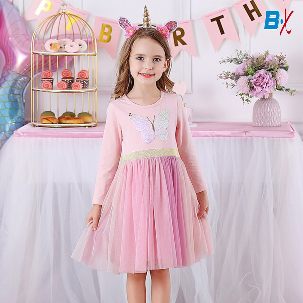 VKT Revesible Sequin Butterfly Full Sleeves Pink Frock 10154