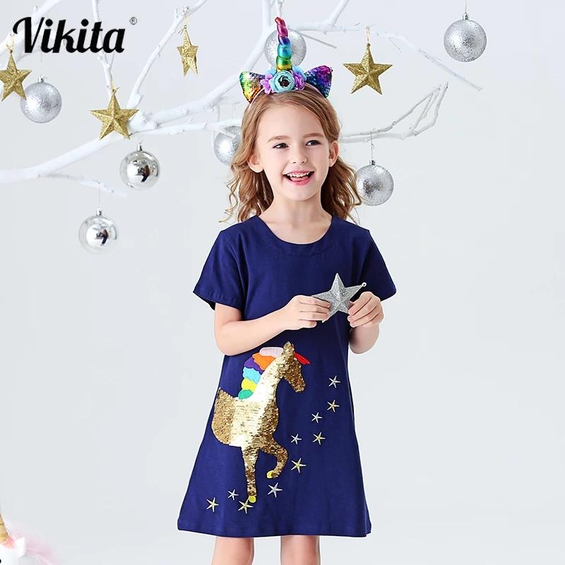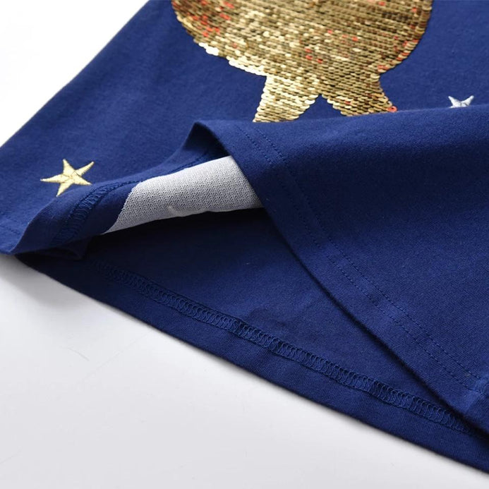 VKT Reversible Unicorn Sequin Frill Sleeves Blue Frock 7496