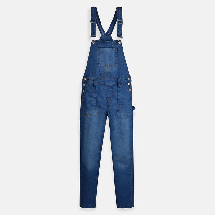 WF Front Pocket Mid Blue Denim Dungaree 3973