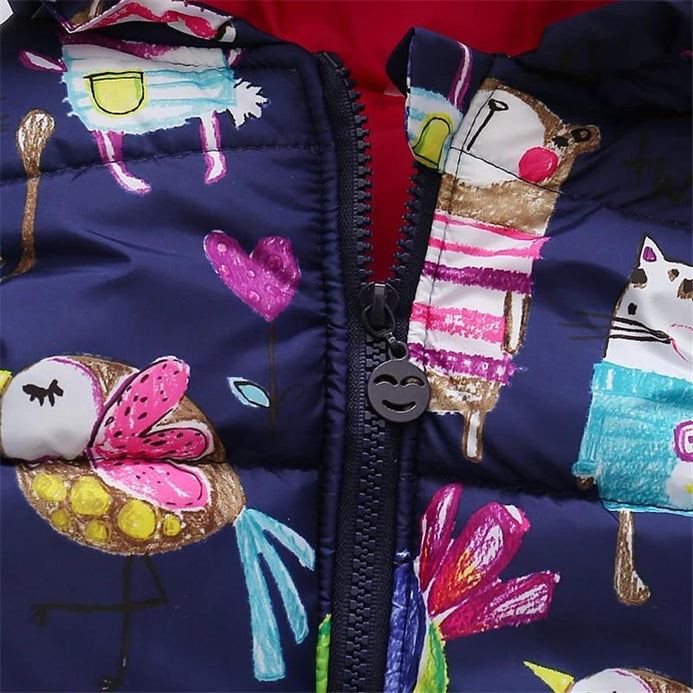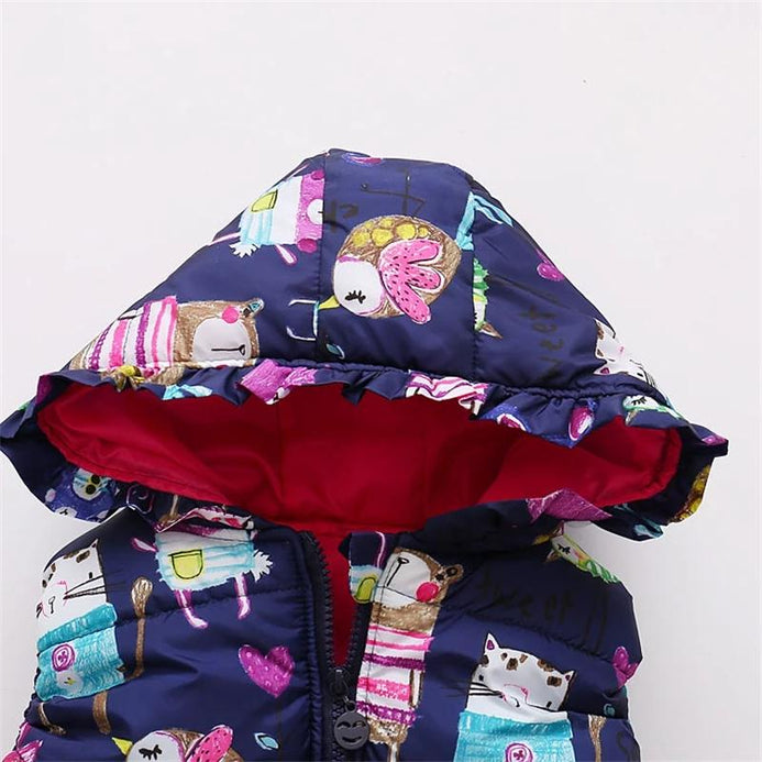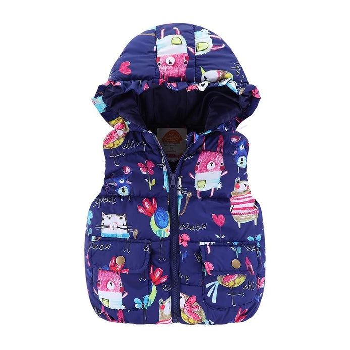 Y5 Animal & Birds Voices Sleeveless Hooded Navy Blue Puffer Jacket 7664