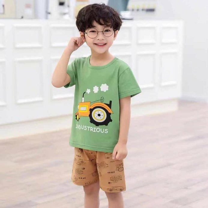 YK Industrious Tractor Green 2 Piece Shorts Set 4503