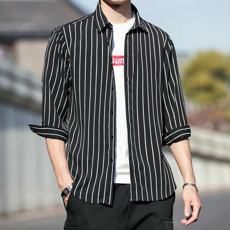 ZR Thin White Line Jet Black Casual Shirt 8142