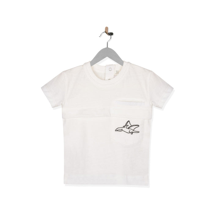 ZR Front Pocket Dianasour White T-Shirt