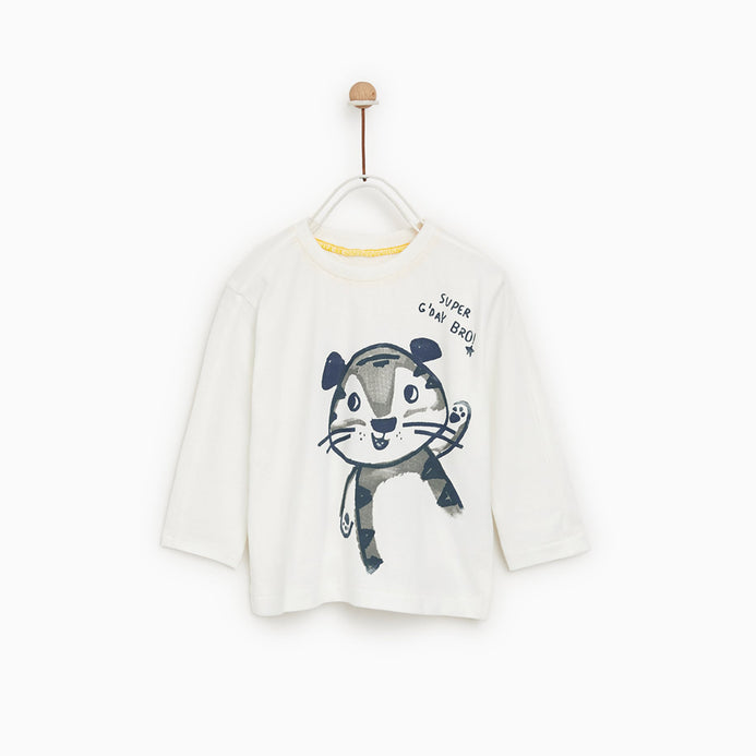 ZR Little Tiger Full Sleeves White Tshirt 1377