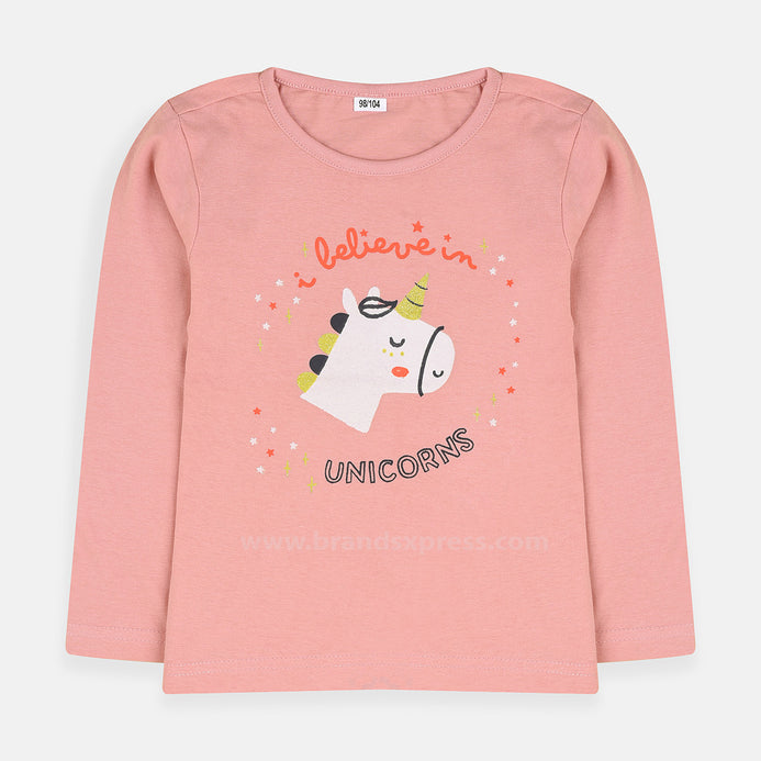 ZE Believe In Unicorn Tea Pink Full Sleeves T shirt 7762