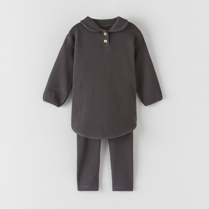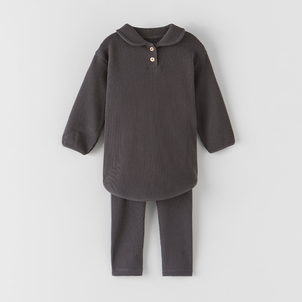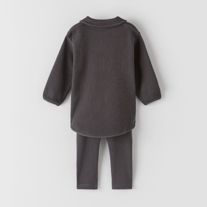ZR Collar Style Long Charcoal Thermal 2 Piece Set 10415