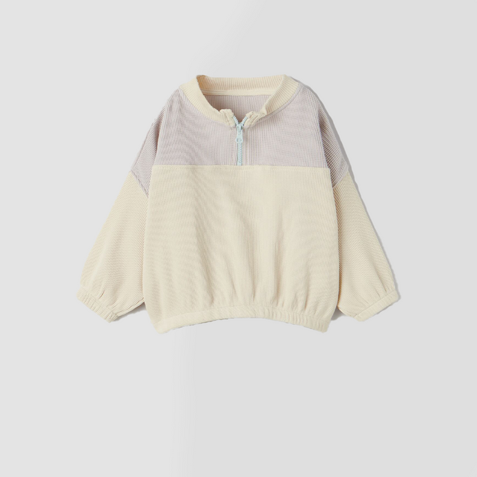 ZR Color Block Loose Style Cream Thermal Sweatshirt 10474