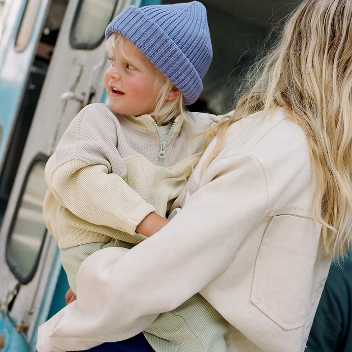 | Top | Round neck sweatshirt with long cuffed sleeves. |