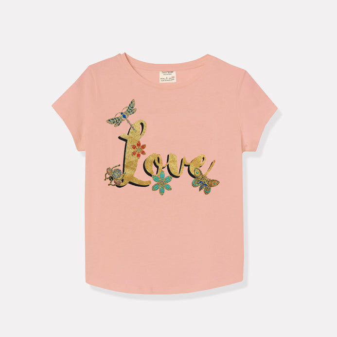 ZR Girls Printed Love Tea-Pink Tale Top 9743