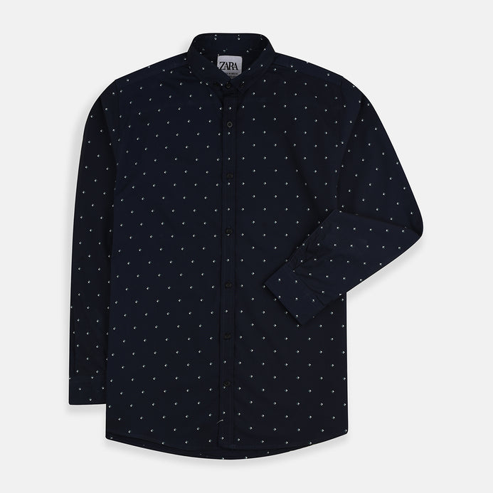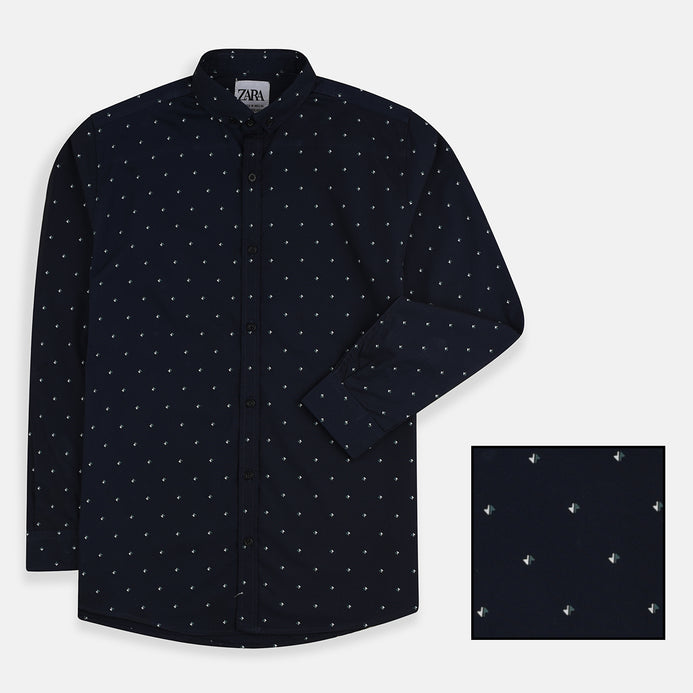 ZR Mini Two Color Triangle Print Navy Blue Casual Shirt 4689