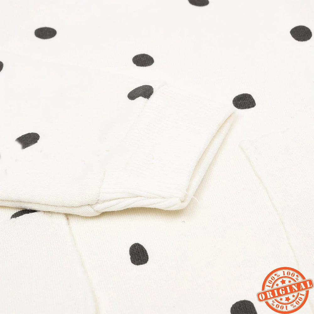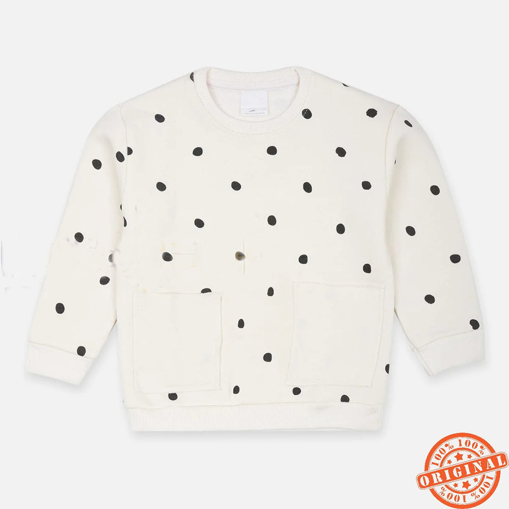 ZR Polka Dots Double Pockets White Fleece Sweatshirt 10350