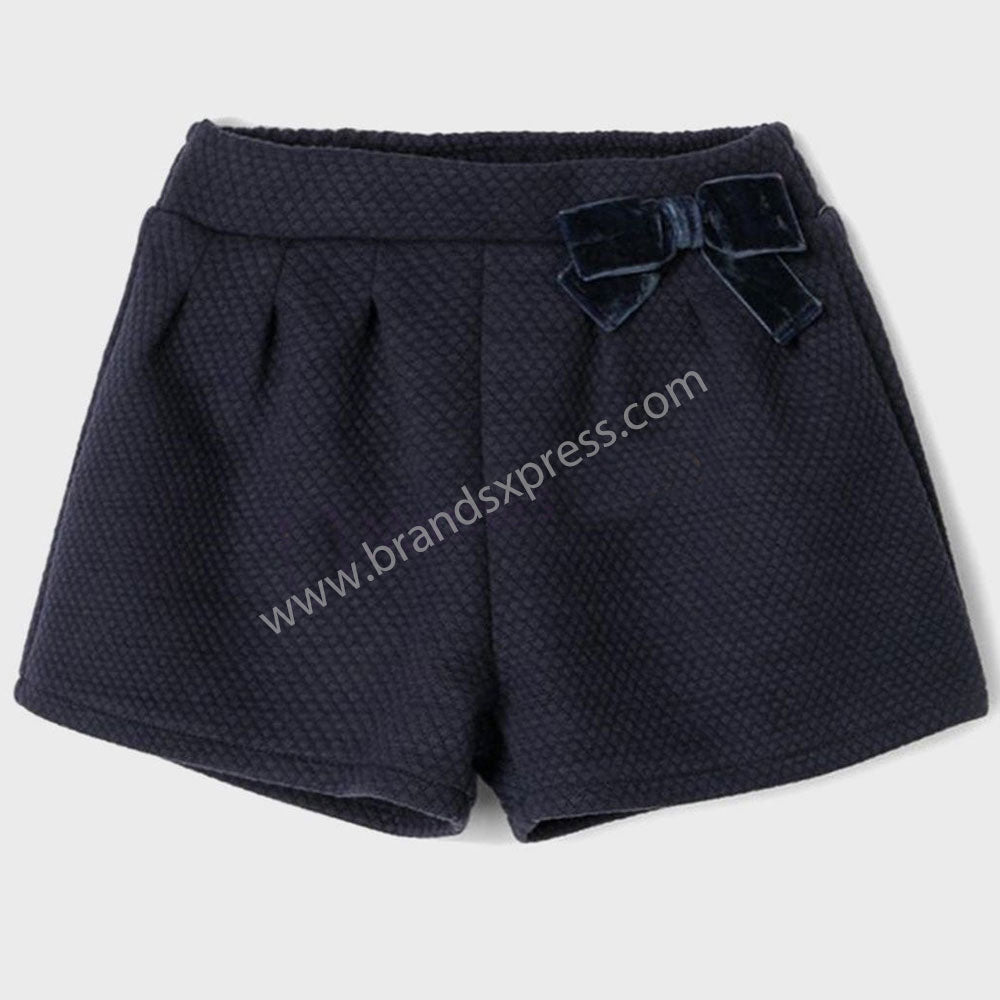 ZY Quilt Cubes Bow Style Navy Blue Girls Shorts 8795