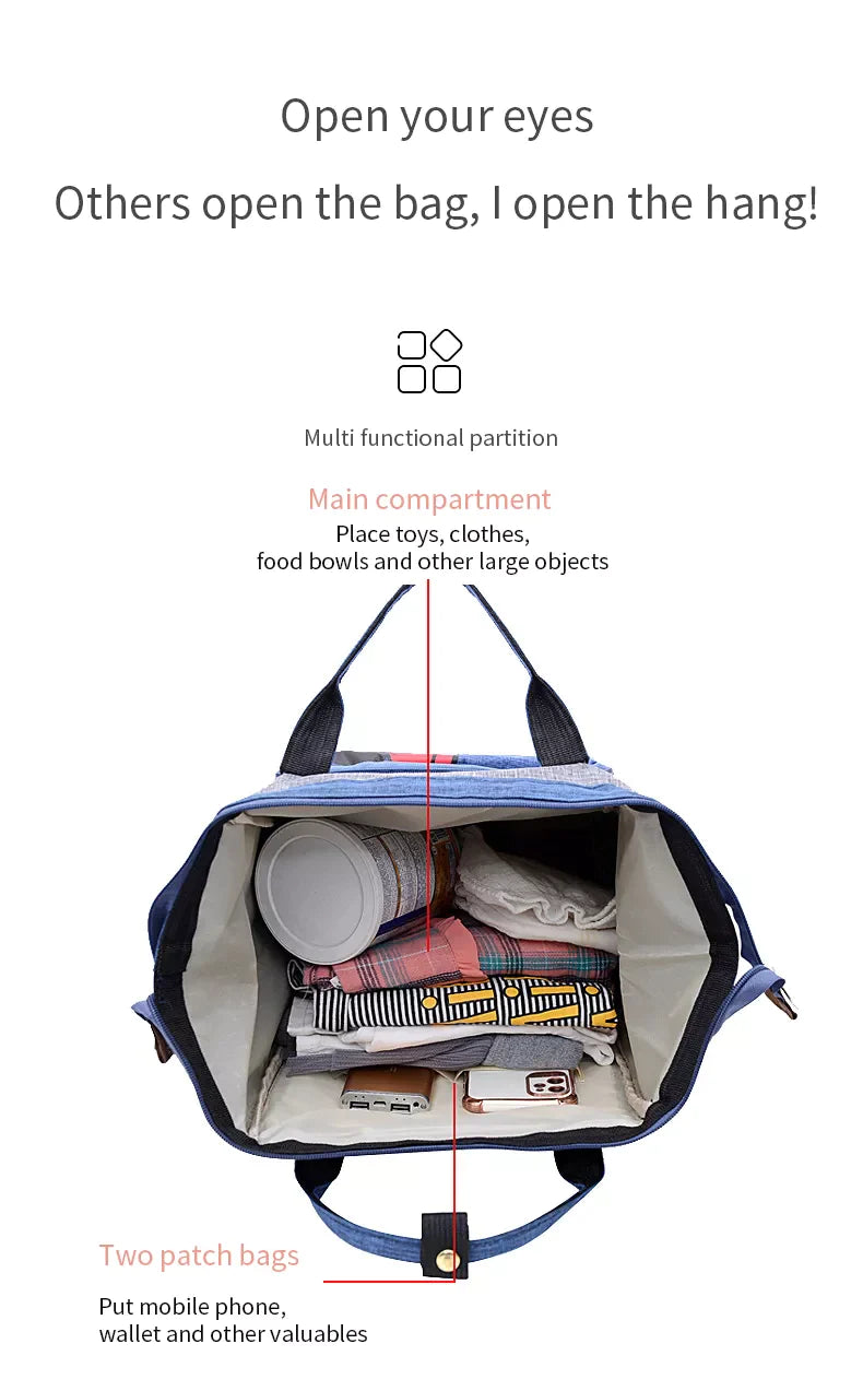 Lining Material: Polyester Shoulder strap style: double root Closing method: zipper With or without interlayer: None Style: mother and baby bag |