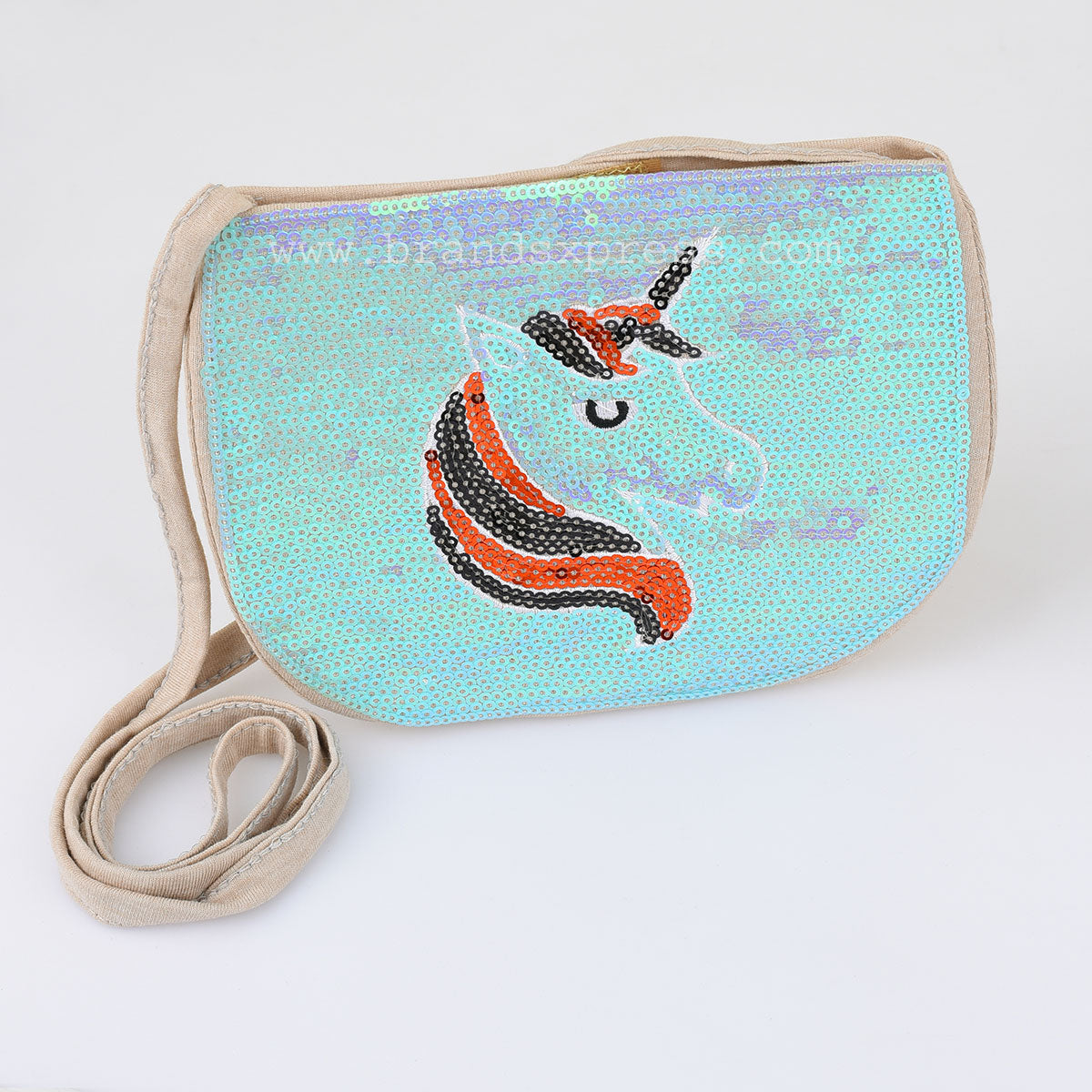 - BZ Light Blue Sequence Unicorn Brown Mini Purse 6070
