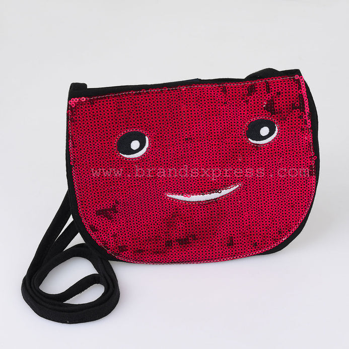 BZ Matt Red Sequence Smiling Face Black Mini Purse 6049
