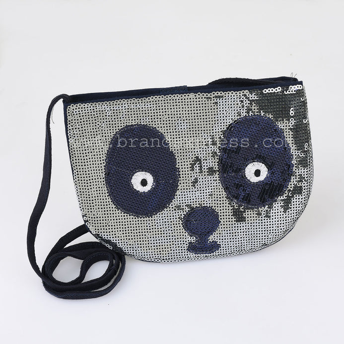 BZ Sequence Panda Face Navy Blue Mini Purse 6003