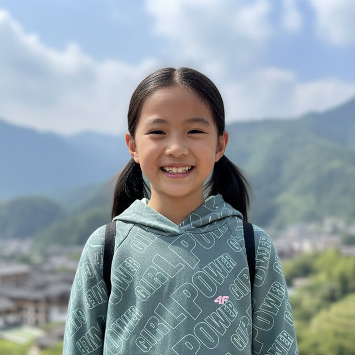 4F All Over Power Girl Print Slate Green Fleece Hoodie 14482