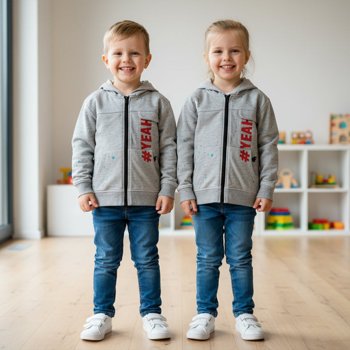 4F # YEAH lengthy Pocket All Over Light Paint Grey Terry Zipper Hoodie 14356
