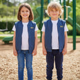 5.10.15 All Over Stitches Style Front Car Badge Sleeveless Blue Mock Neck Zipper 14367