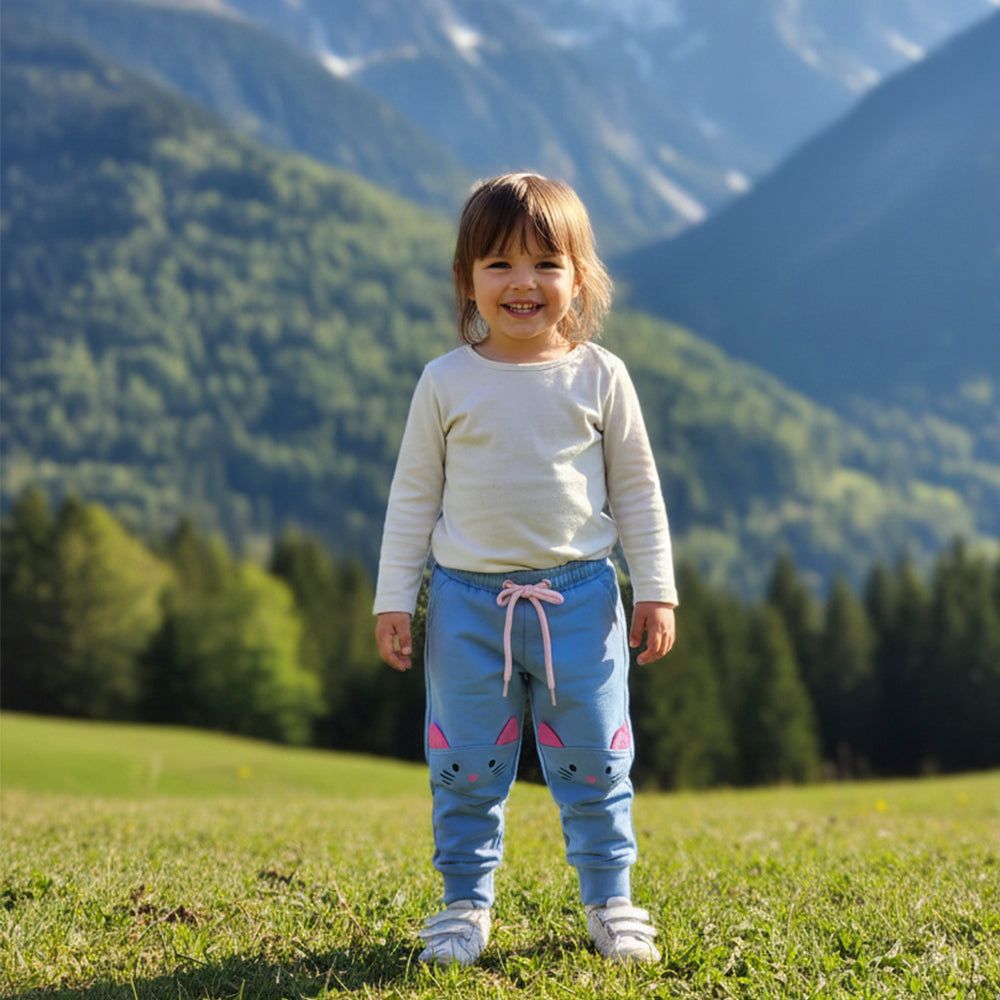 5.10.15 Cat Face With Pink Cord Terry Sky Blue Trouser 14636