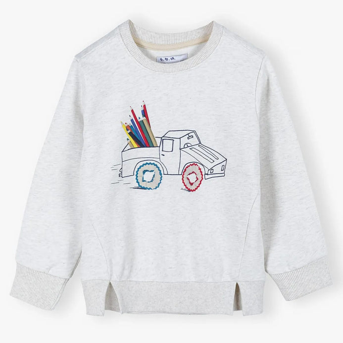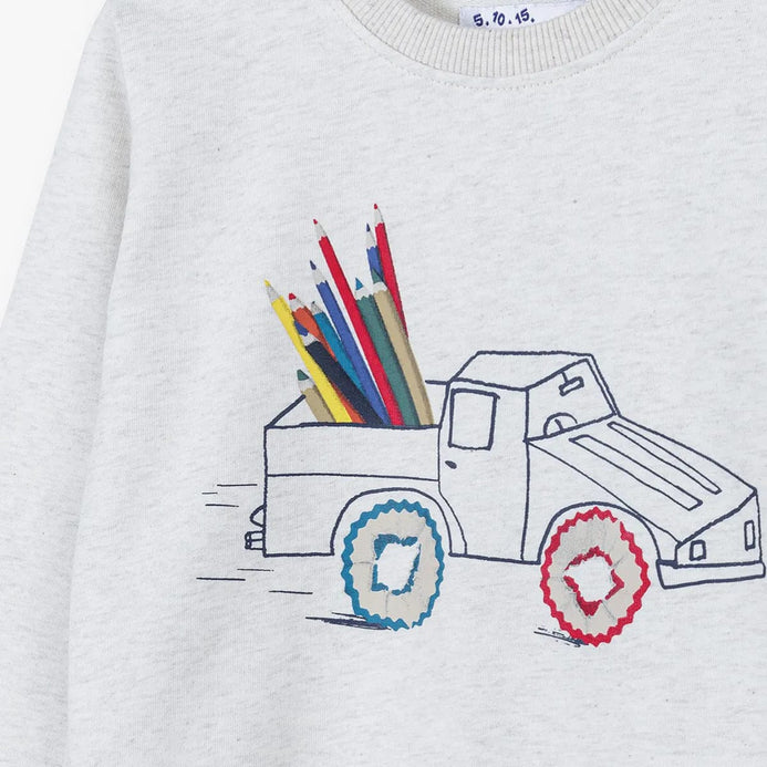 5.10.15 Hilux Car & Color Pencil Print Cut Style Textured White Terry Sweatshirt 13757
