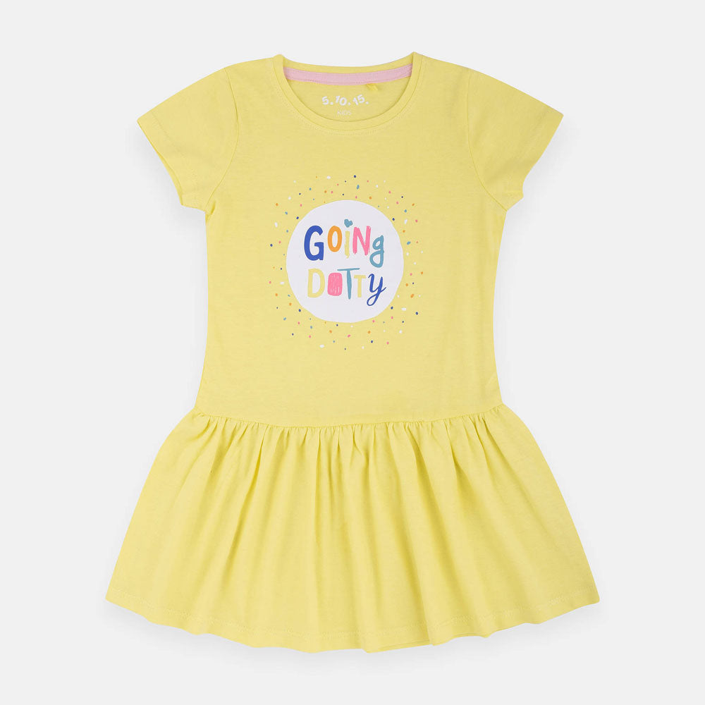 5.10.15 Lemon Yellow Going Dotty Girls Frock 1774