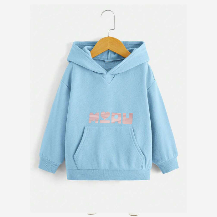 5.10.15 M Heart Print Kangroo Pocket Style Sky Blue Hoodie 13496