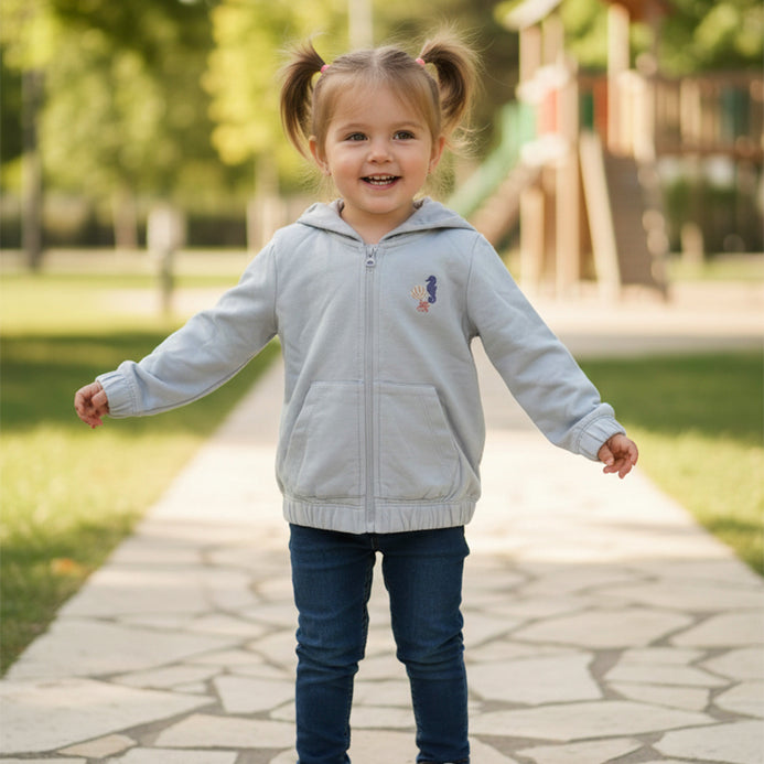 5.10.15 Sea Character Embroided Bottom Elastic light Blue Terry Zipper Hoodie 14584