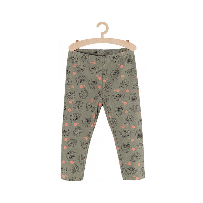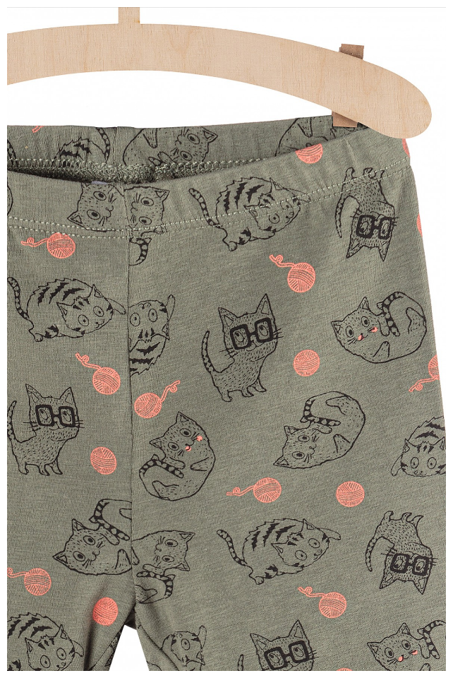 51015 Woven Ball Cat Print Green Legging 4339