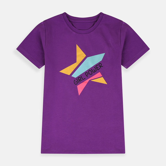 B.X Girls Power Star Printed Purple Tshirt 7079