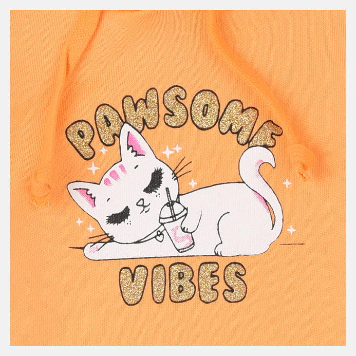 B.X Paw Some Vibes Kitty Print Royal Orange Hoodie 8332