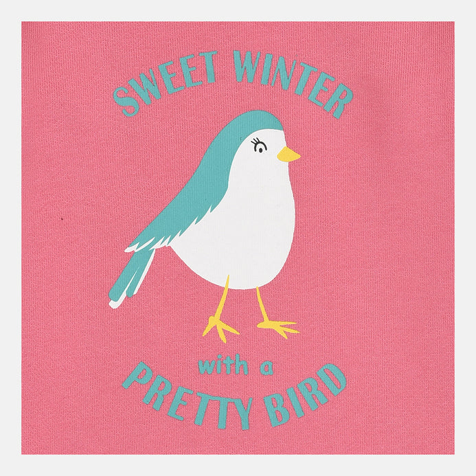 B.X Sweet Winter Pretty Bird Print Pink Sweatshirt 8490