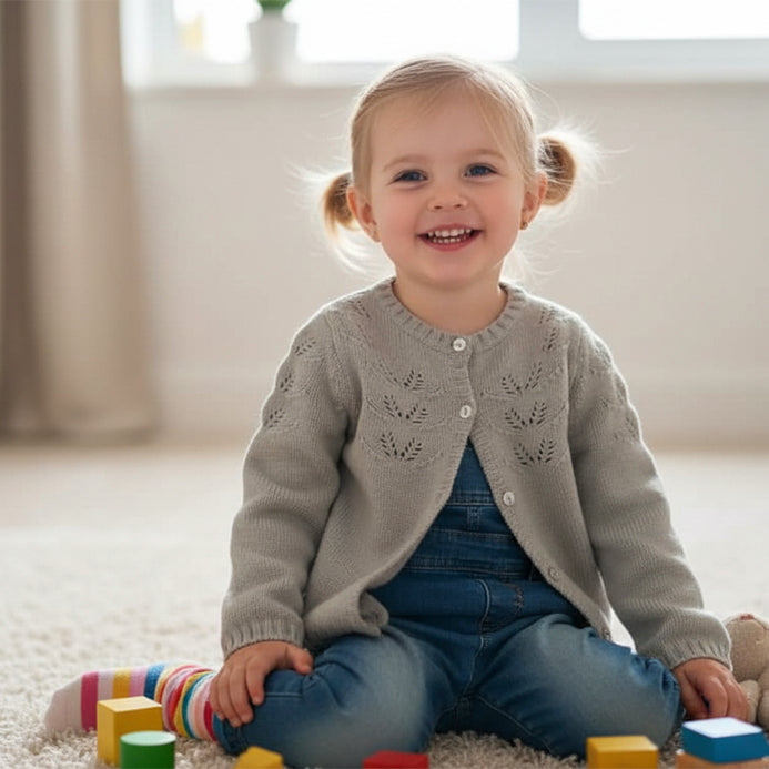 BC Open Work Leaves Shaped Light Grey Cardigan 14428