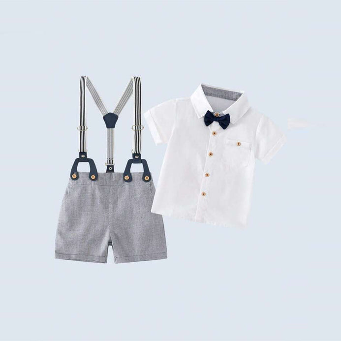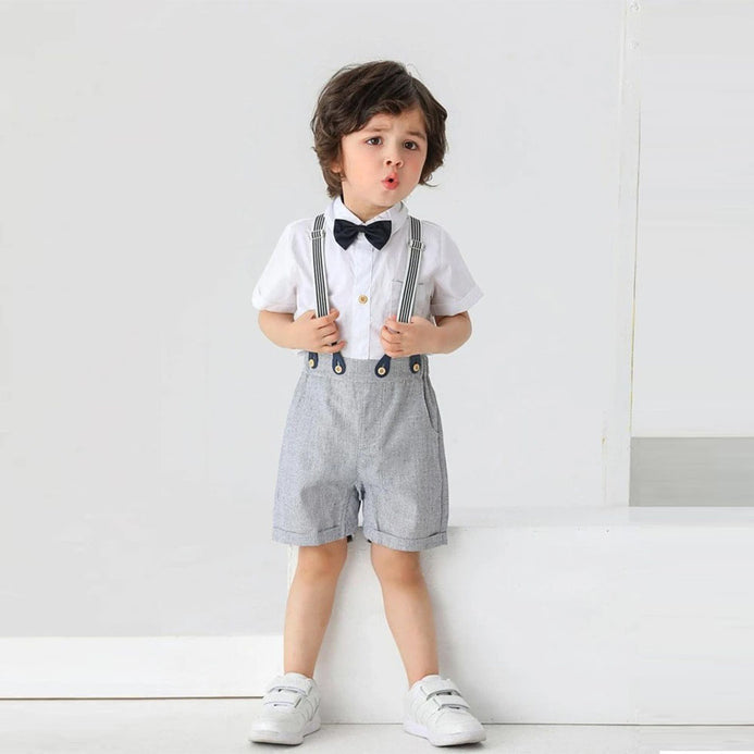 BK White T-Shirt & Black Bow Style Textured Grey Shorts with Gallance 3 Piece Set 14084
