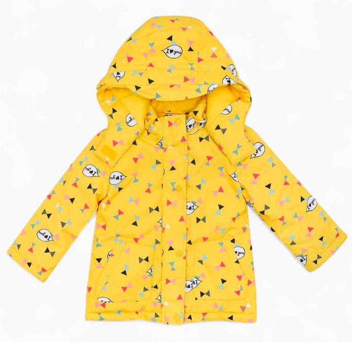 Bla I Love You Triangle Print Inner Warm Fleece Yellow Puffer Jacket 13434