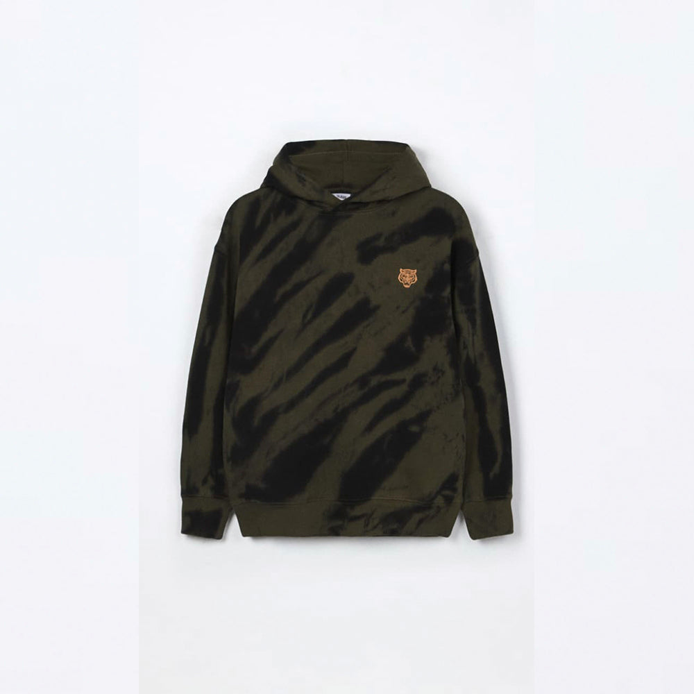 BLK Tiger face Embroided Sided pocket Tie-dye Fleece Hoodie 14557