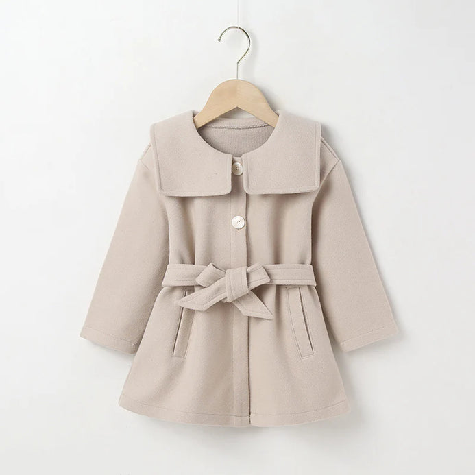 CN Collar Style Dark Beige Warm Dress Coat With Belt 10548