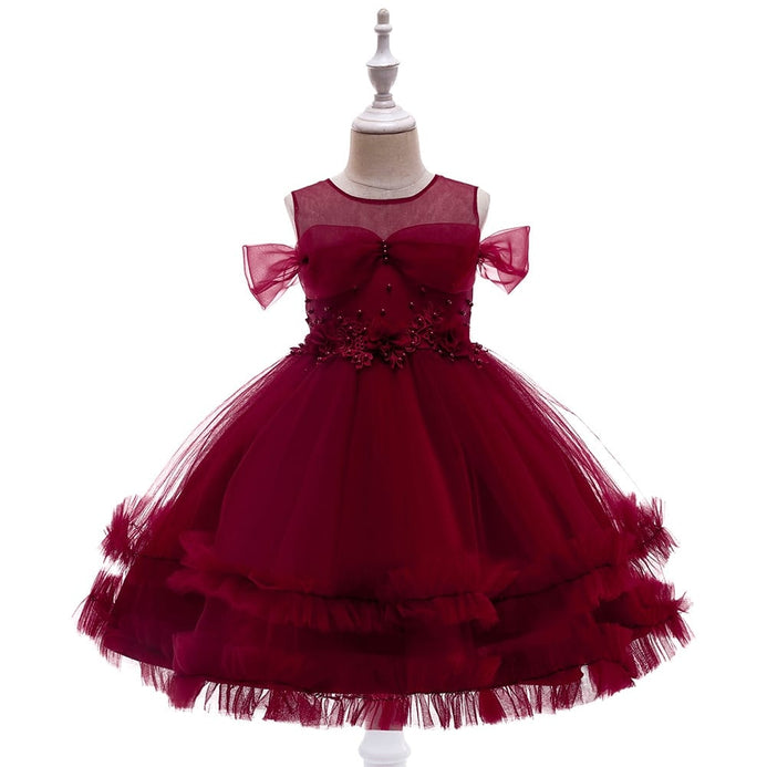 CN Frill Bottom Beads & Flowers Red Fancy Frock 11018