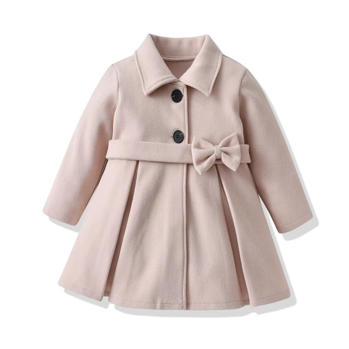 CN Front Button Style Beige Warm Dress Coat With Bow Belt 10539