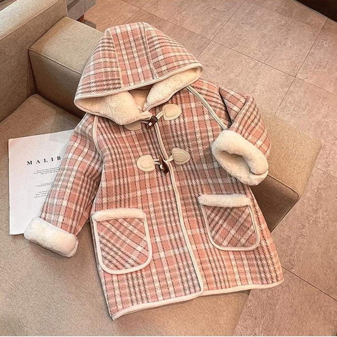 - CN Tea Pink With Cream Inside Furr Front Style Warm Coat 10537