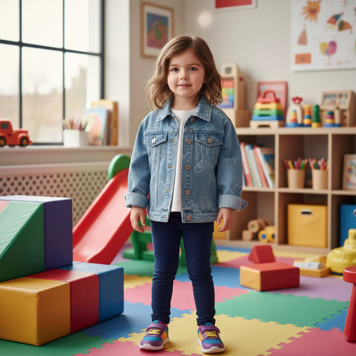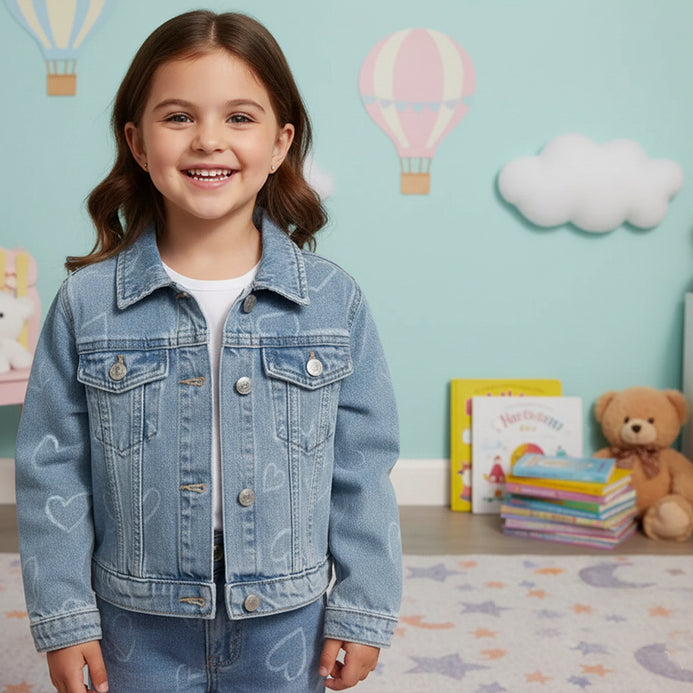 DD All over Mini Hearts Two Pocket Style Mid Blue Denim Jacket 14978