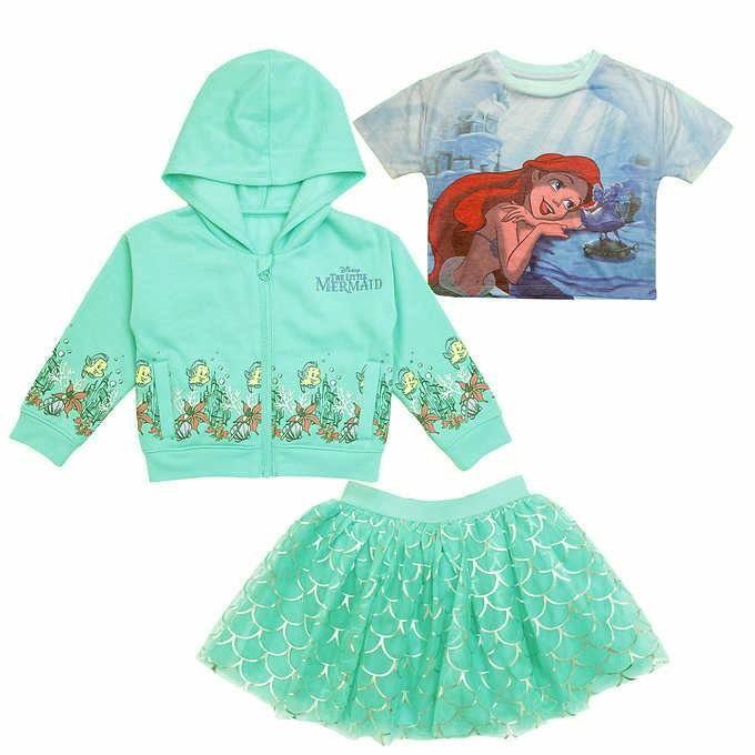 DSNY The Little Mermaid Embroided Green Hoodie T-Shirt & Skirt Fancy 3 piece Set 13347