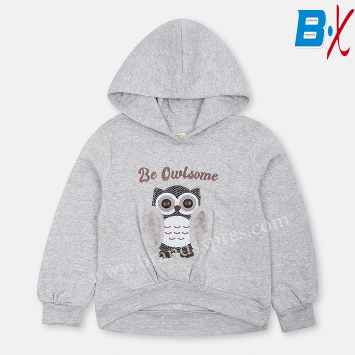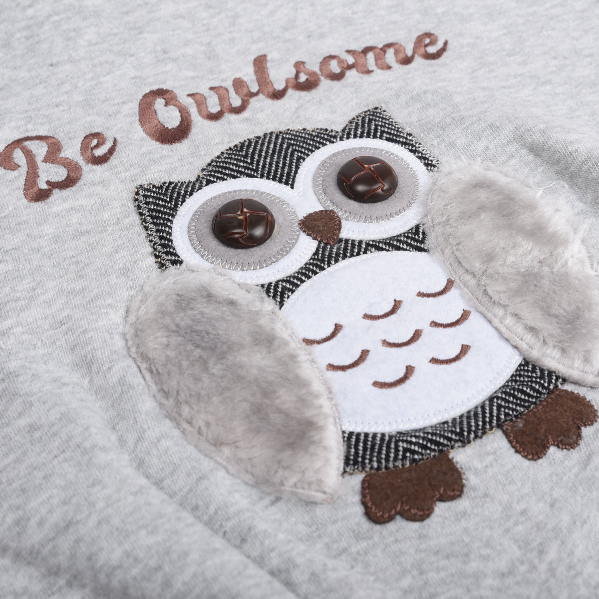 E.Simpson Be Owl Same Light Grey Fleece Hoodie 8506