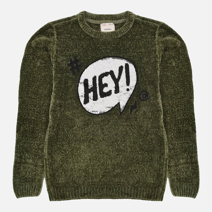 FZK Sequin Hey Rabbit Fur Green Sweater 11976