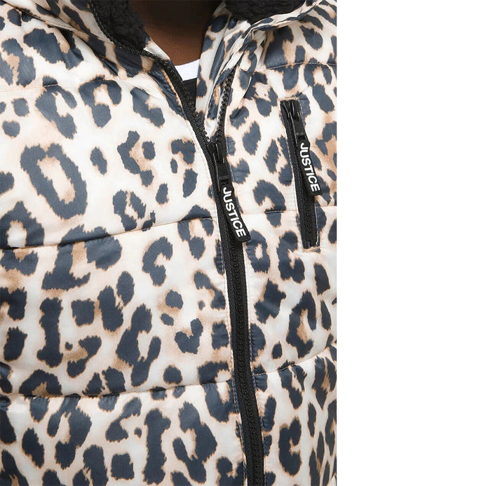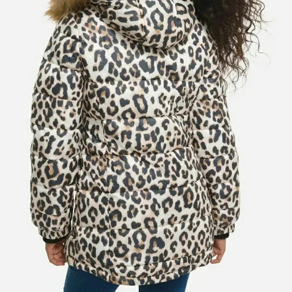 GA Fur Neck Sherpa Inside Warm Leopard Puffer Jacket 12003