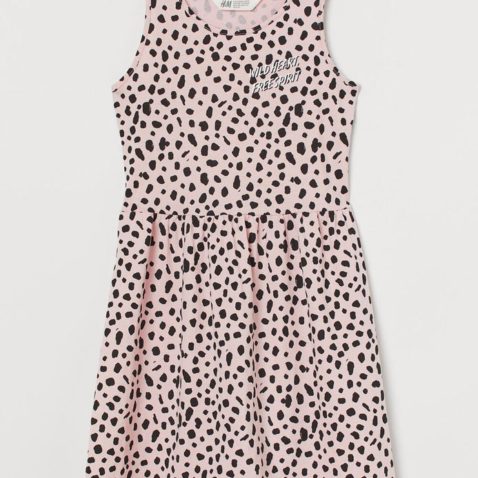 HM Wild Heart Black Dots Soft Pink Sleeveless Frock 8774