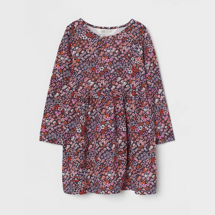 HM All Over Multi Size Flowers Black Full Sleeves Frock 12257