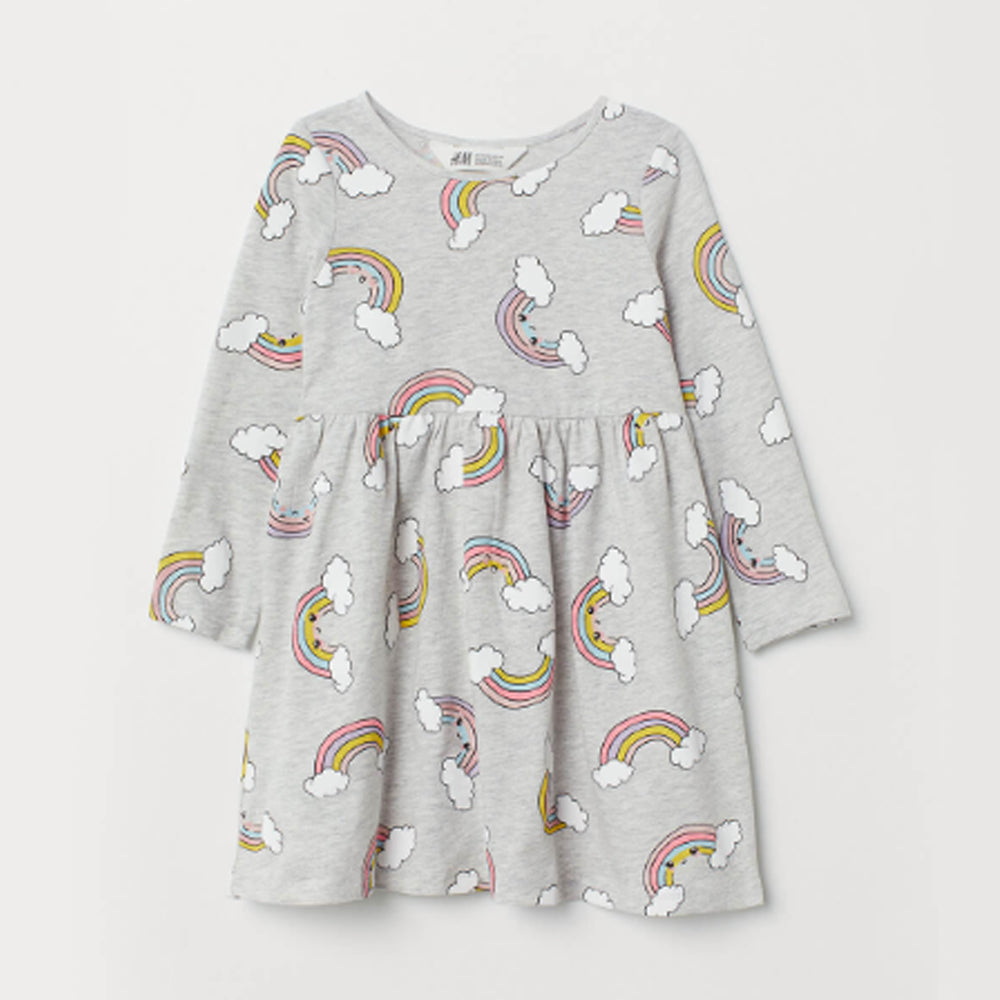 HM All Over Rainbow Grey Full Sleeves Frock 12261